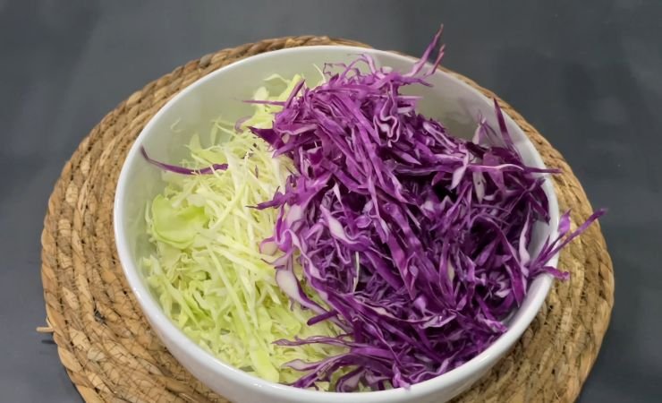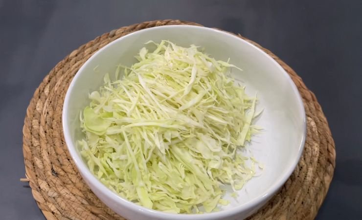 - Pat the shredded cabbage dry with paper towels if it seems too wet