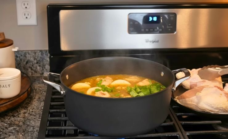 • Large stockpot (6–8 quart): Use this to hold broth and chicken.